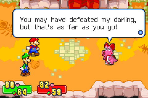 In Super Mario Advance, when you approached Birdo she would say "That's as far as you go!" in speech.