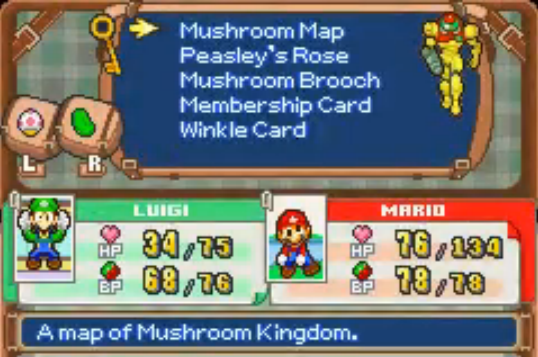 When you reach Mushroomtop Village, you must head to the arcade and play a bar-tilting game before you can do anything else. The instructions are read to you by a small model of Geno, one of Mario's companions from Super Mario RPG (SNES).