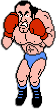 The egotistical celebrity bodybuilder from Hollywood, who claims to be 27 years old. His Macho Spin Punch can clothesline Little Mac to the canvas in no time.