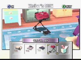 If you arrange to have some of your money sent home in Pokémon Gold/Silver or Crystal, then your mom will occasionally buy you gifts in the game to decorate your room with. These include various Nintendo consoles. In Pokémon Stadium 2's "My Room" mode you can decorate your room in full 3D, and when you use a console you can see stills of games from that system on the TV.