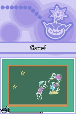 In Jimmy T.'s "Chalk Full" microgame, you sometimes have to clean a drawing of Mario from the chalkboard.