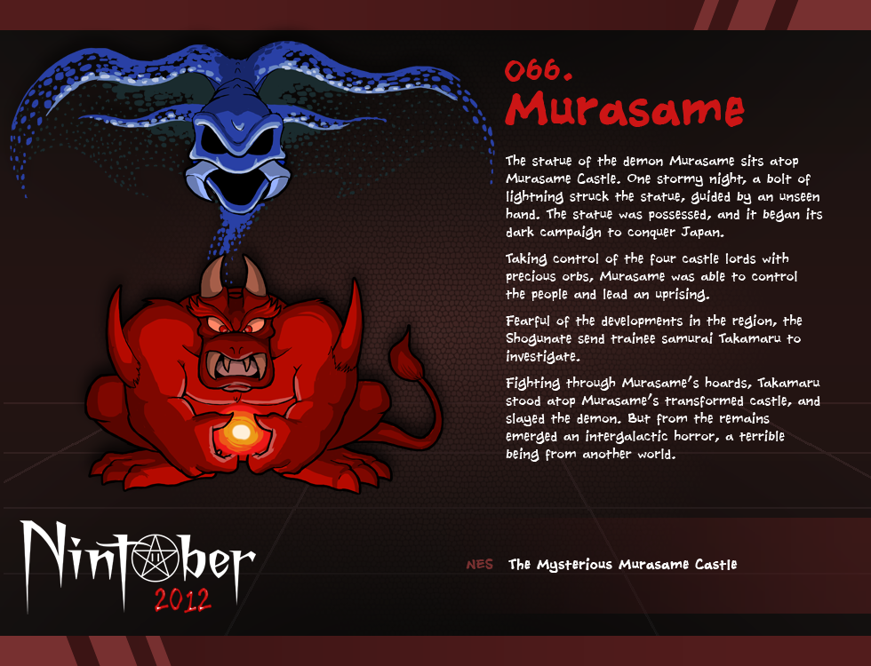 The statue of the demon Murasame sits atop Murasame Castle. One stormy night, a bolt of lightning struck the statue, guided by an unseen hand. The statue was possessed, and it began its dark campaign to conquer Japan.