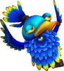 A bird that helps Donkey Kong by carrying him with its feet and flying up to higher areas. These beautiful birds feature big, decorated wings and unique coloring. A certain Strawberry Kingdom is home to a Helibird nest populated only by Helibirds.