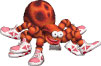 A spider friend of the Kongs. Squitter features a patchy pattern and a fancy sneaker on each foot. With Diddy on board, Squitter will assist by spewing out webs that serve as projectile weapons or temporary platforms. These platforms can be used to access otherwise unreachable areas.