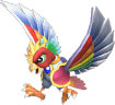 A monstrous bird with white- and rainbow-colored bladed wings and huge talons. Challengers who face Dyna Blade are forced to contend with her speed and armor plating that can reflect any attack. The only weak point is her head. In Kirby Super Star, she's destroying Dream Land's crops, but there's apparently a perfectly good reason for this.