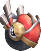 One dangerous dude--as evidenced by the skull drawn on his body. Bomber walks around on two legs, but whenever he falls from stairs or other high places, he hits his head and explodes, covering a significant blast radius. Kirby can suck him up to learn the Crash ability, the ultimate weapon for wiping out every last enemy on the screen. Use it once and it's gone!